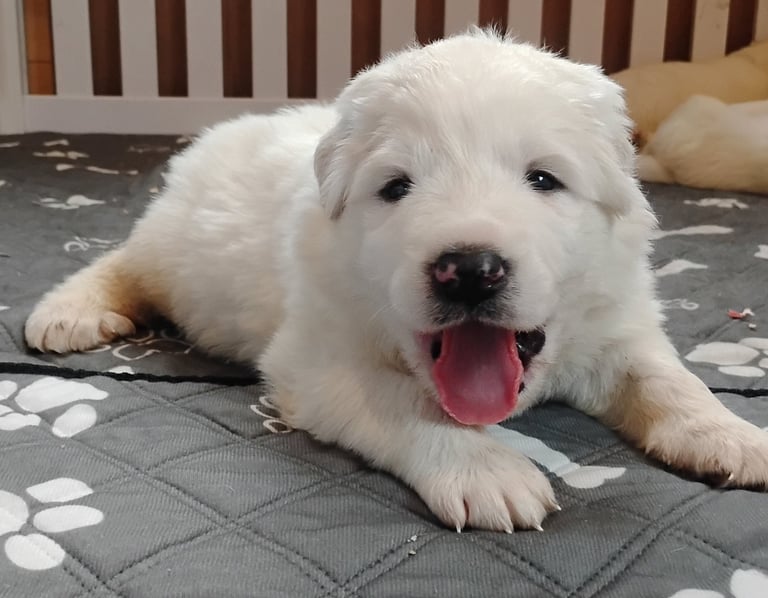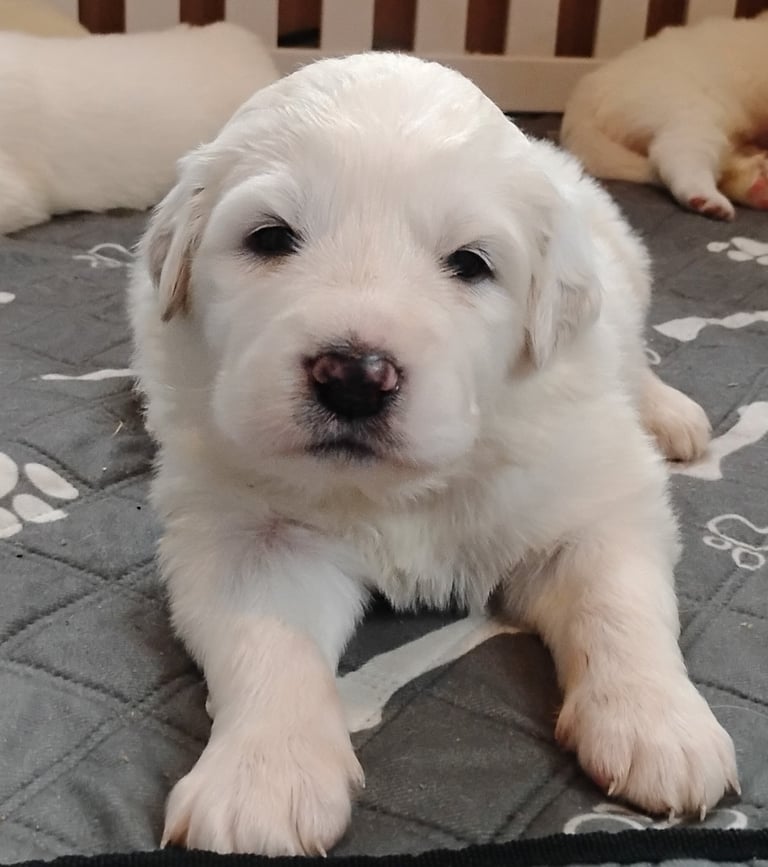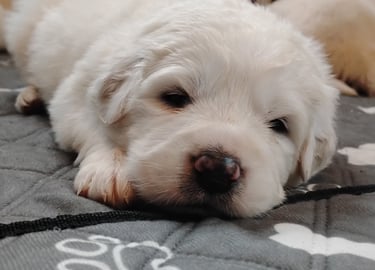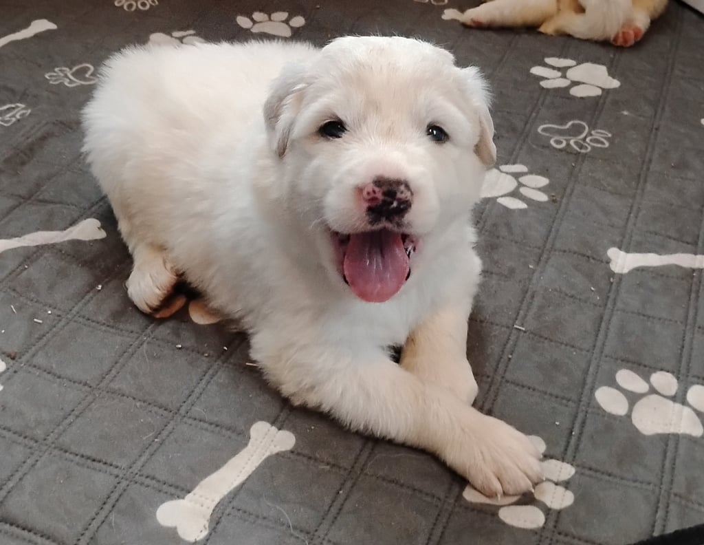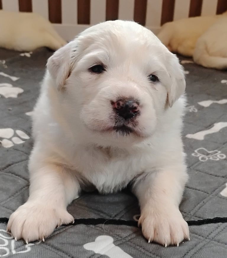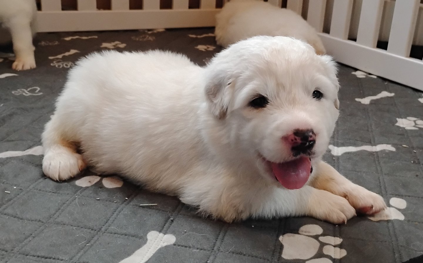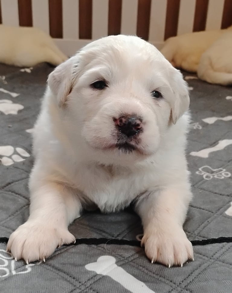 Snow gave birth to five, beautiful, all white puppies on February 11th, 2026. They will be ready for their new homes on April 8th, 2026. We currently have 2 females available.