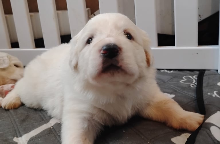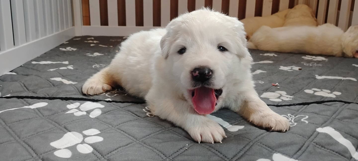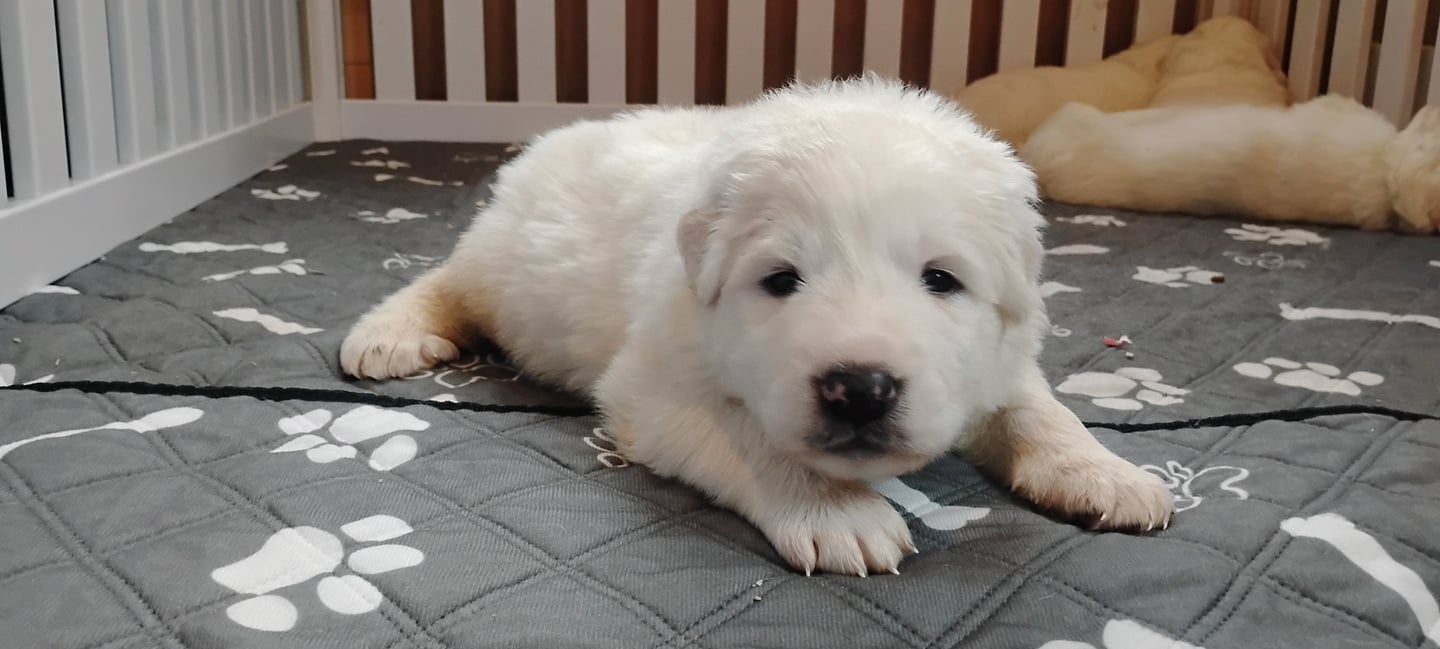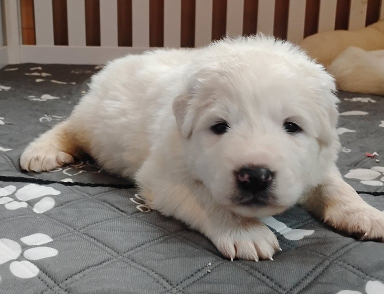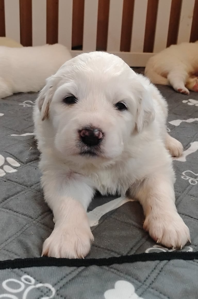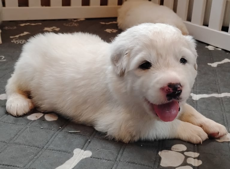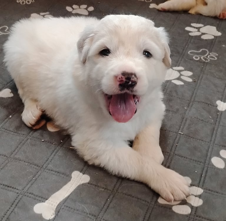 Snow gave birth to five, beautiful, all white puppies on February 11th, 2026. They will be ready for their new homes on April 8th, 2026. We currently have 2 females available.